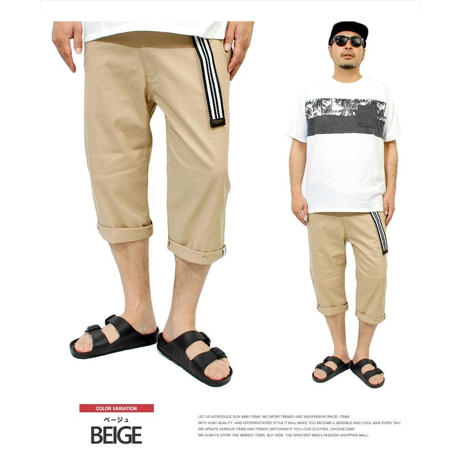クロップドパンツ メンズ 大きいサイズ 7分丈 ストレッチ ベルト付き ロールアップ チノパンツ 白 黒 クロップド パンツ チノ ショートパンツ ハーフパンツ ワンカラーズ One Colors Magaseek